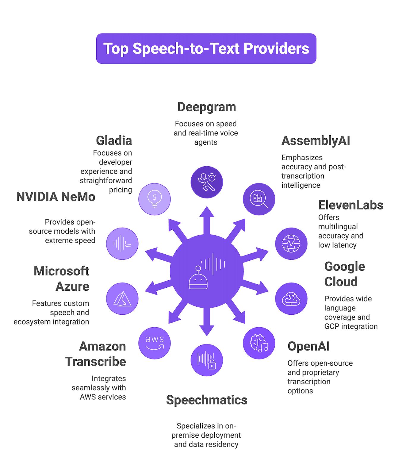 There is no single "best" STT provider. The right choice depends entirely on what you are building. A voice agent that needs sub-200ms streaming latency has different requirements than a medical transcription pipeline that prioritizes domain-specific accuracy.
