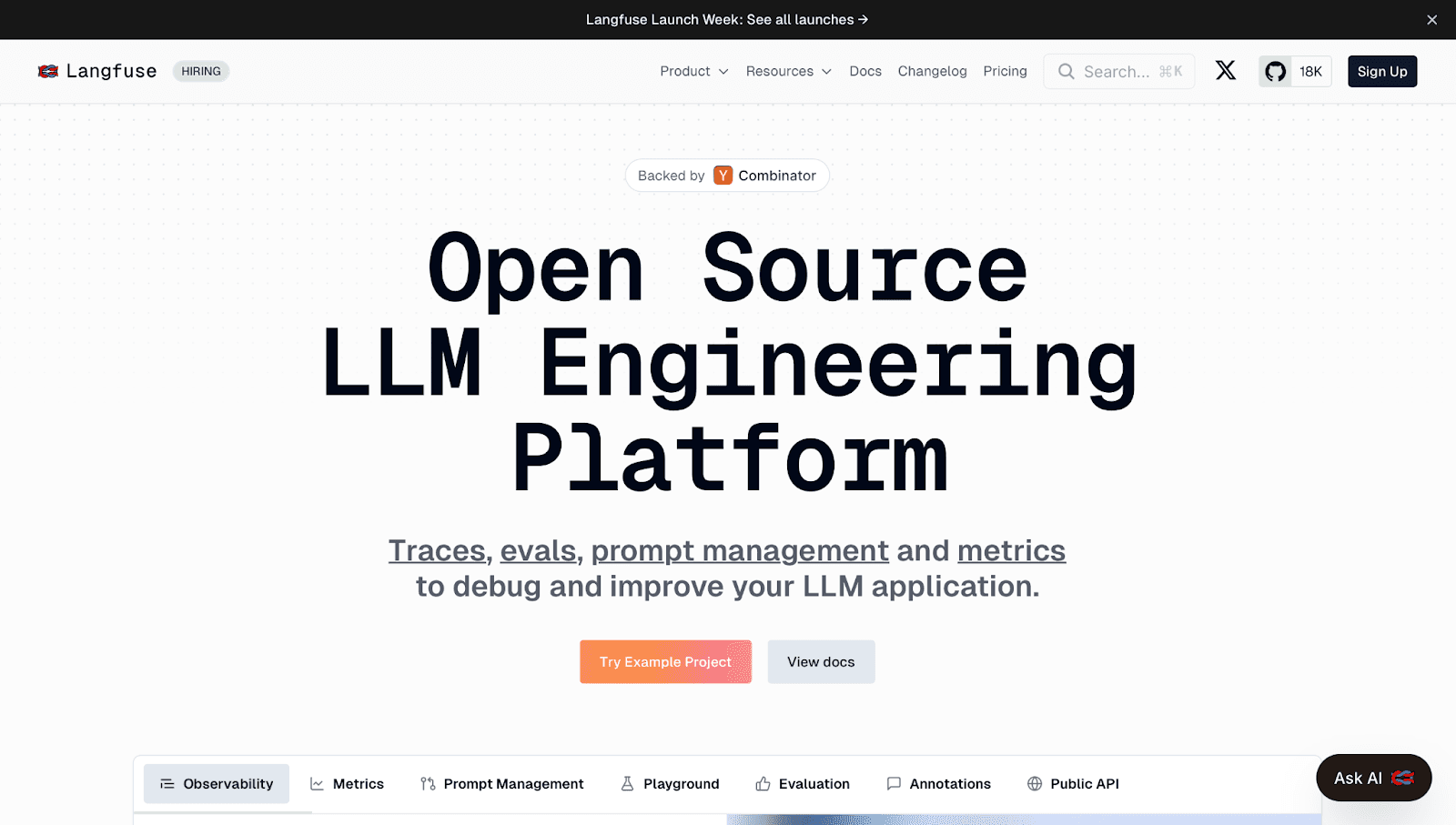The platform offers open-source observability and analytics tools for logging and managing prompts, making it particularly useful for applications built with frameworks like LangChain. It is designed to help developers trace, debug, and analyze the behavior of their LLM applications from development to production.
